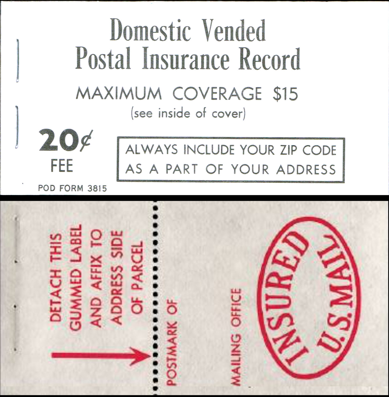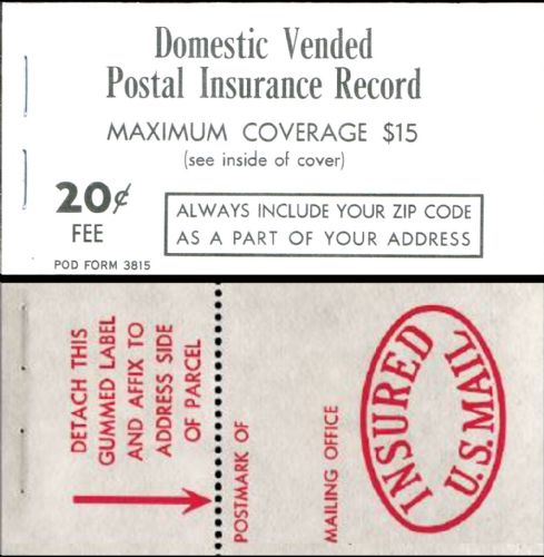 20c Postal Insurance: Red pane: INSURED P.O.D. V