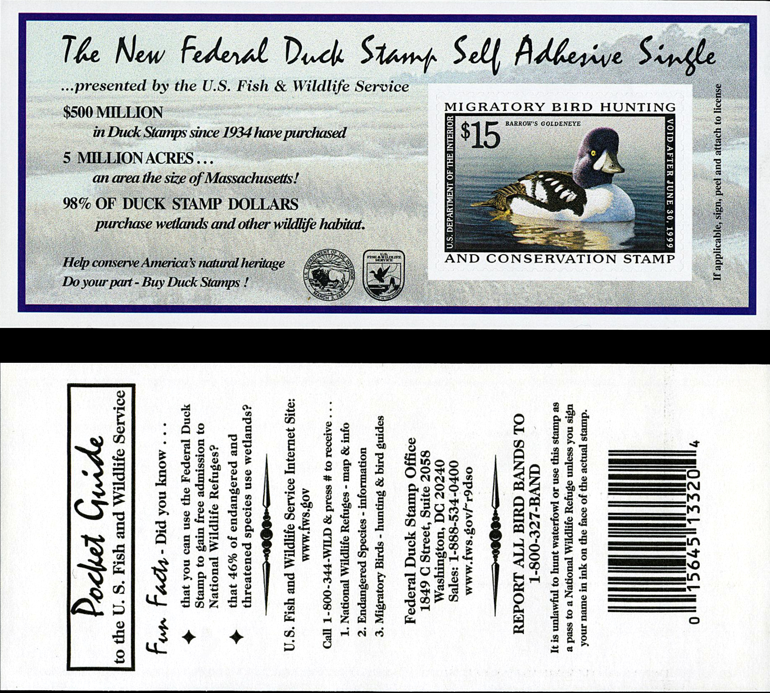 $15.00 Barrow's Goldeneye - Issued 1998