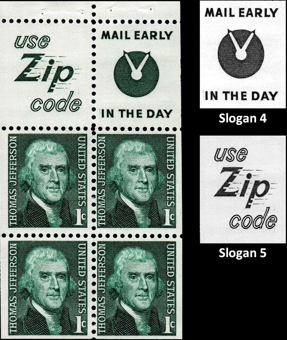 Booklet Pane of 4+2 labels; Slogan 5 & Slogan 4; Shiny Gum