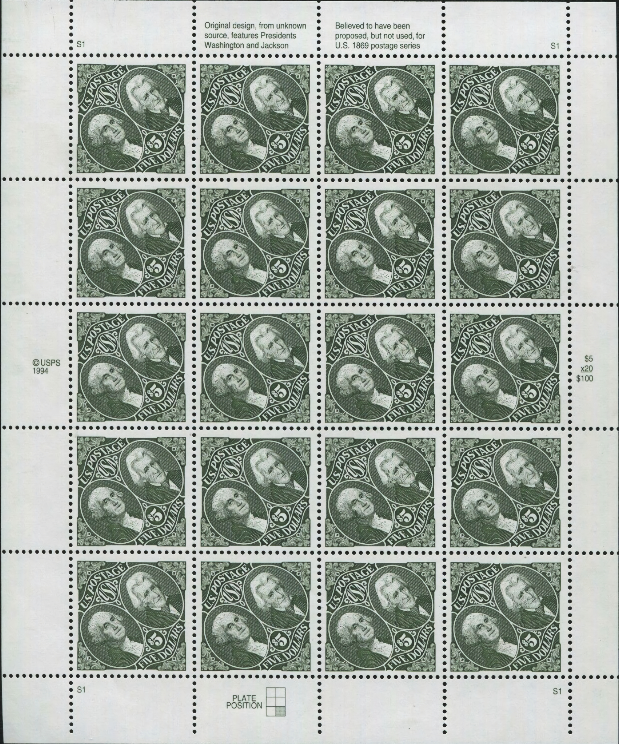 $5.00 George Washington & Andrew Jackson