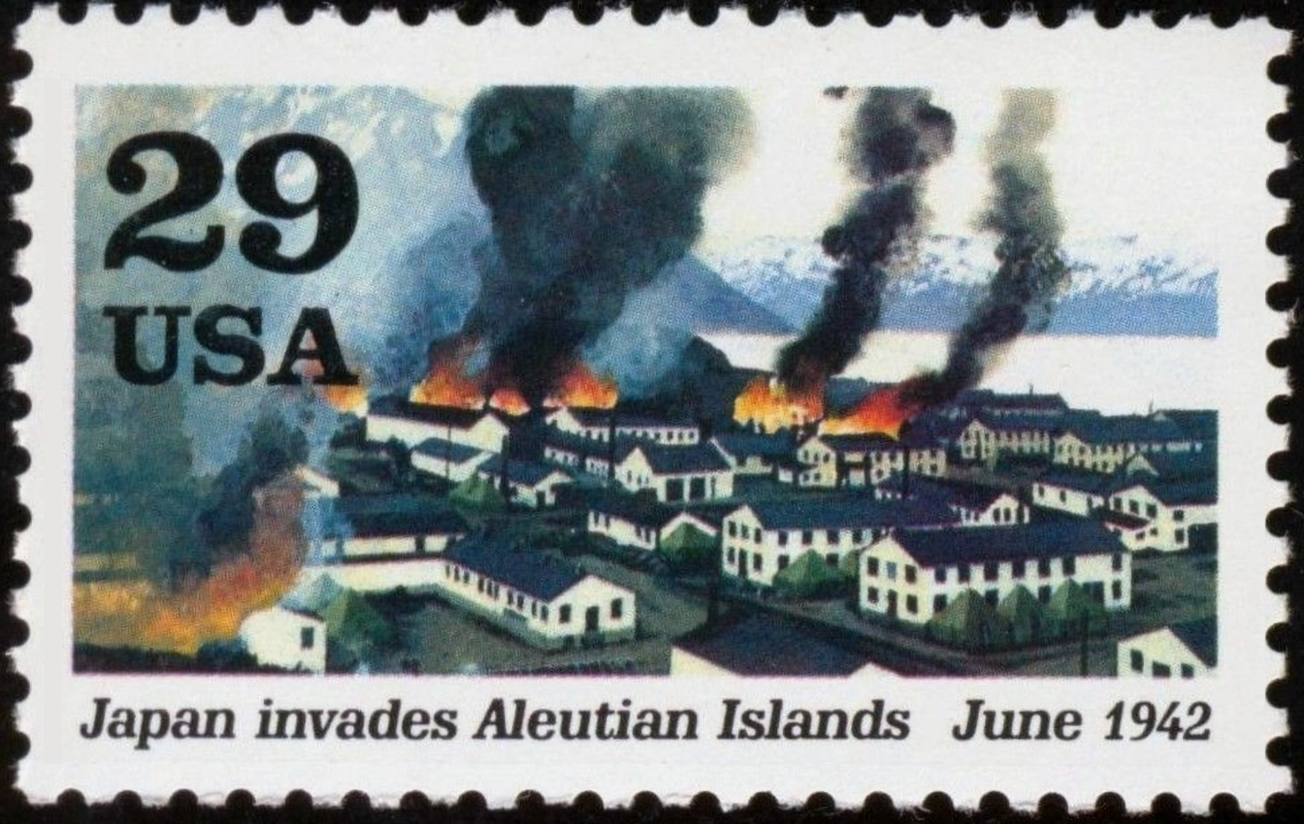 29c Dutch Harbor buildings on fire
