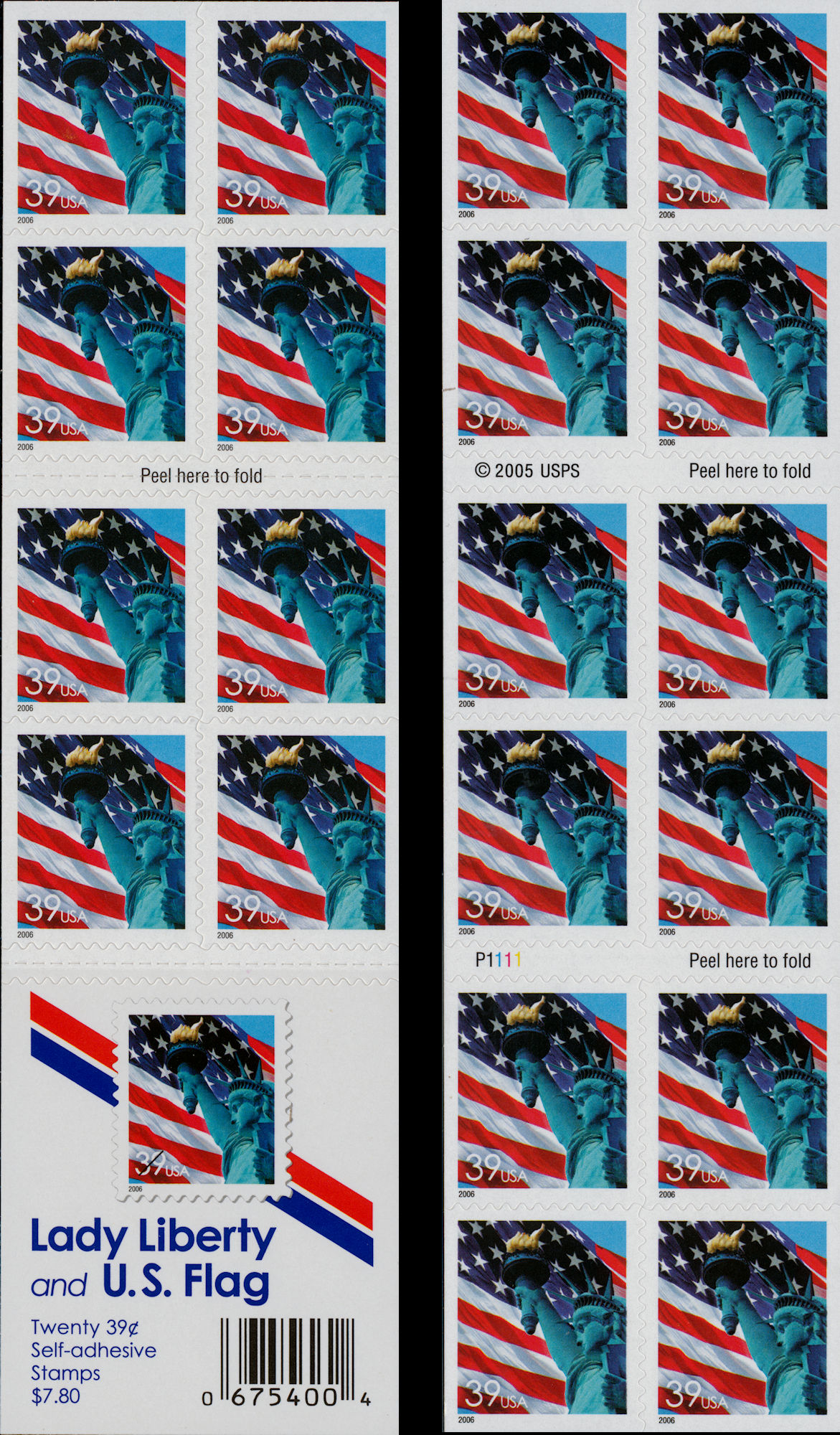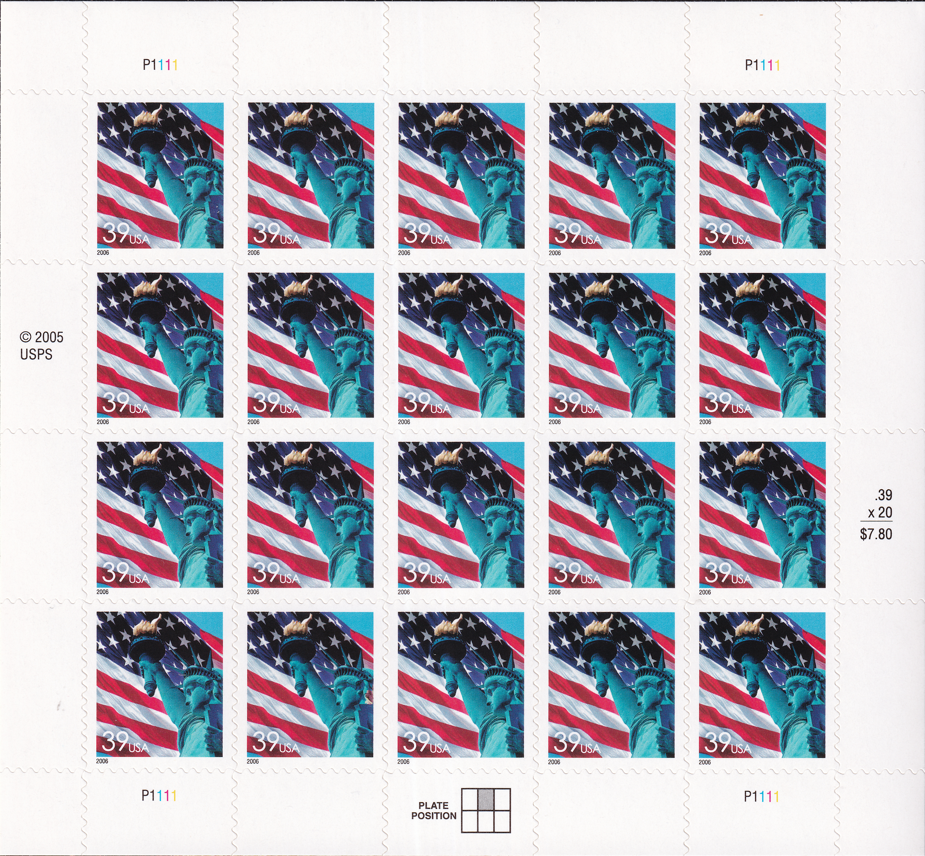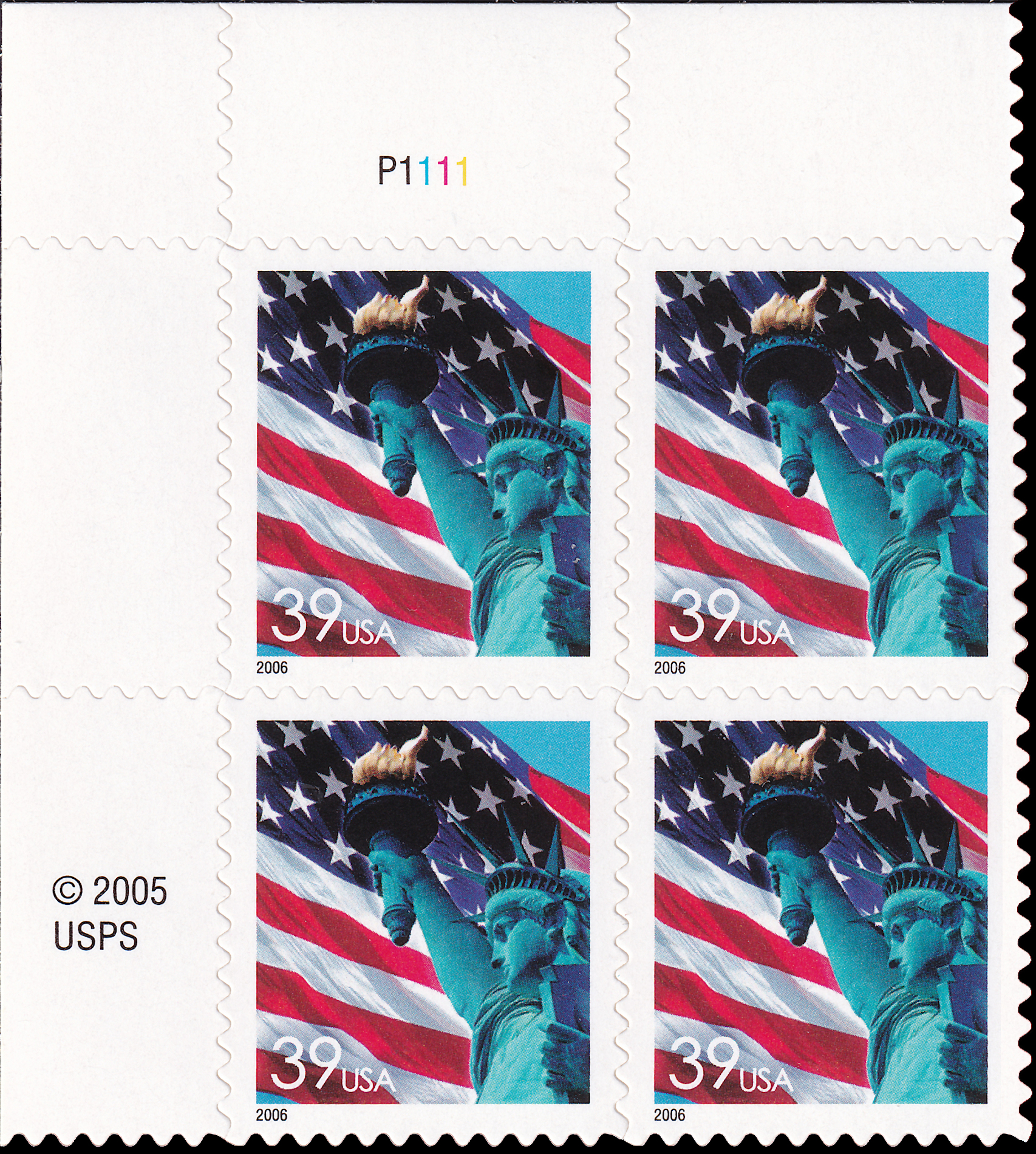 39c Flag and Liberty (Pane / CB / DSB)