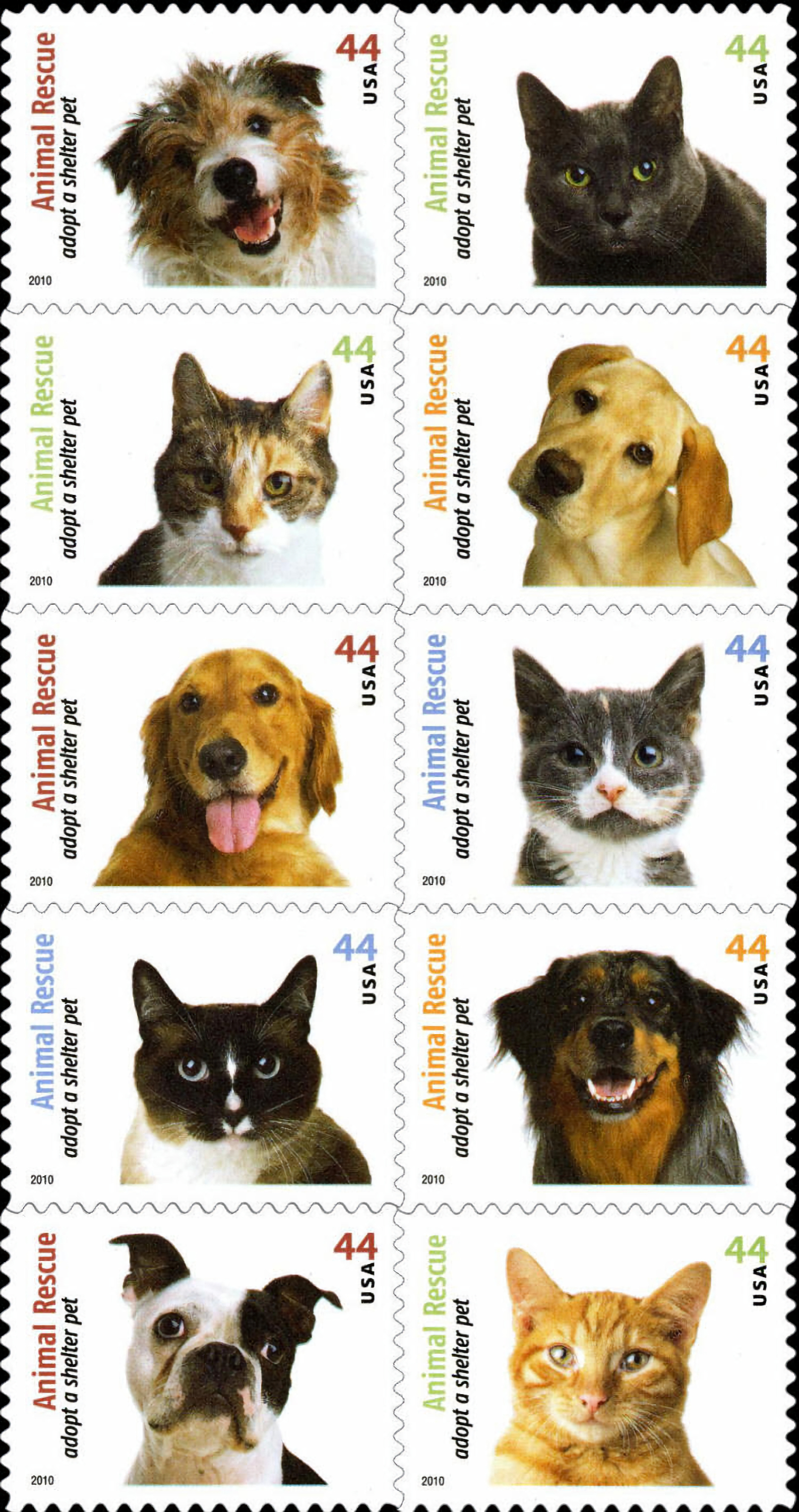 | Issue: | Animal Rescue: Adopt a Shelter Pet Stamp Announcement 10-12: Animal Rescue: Adopt a Shelter Pet Postal Bulletin 22281 — 2010 March 25 |