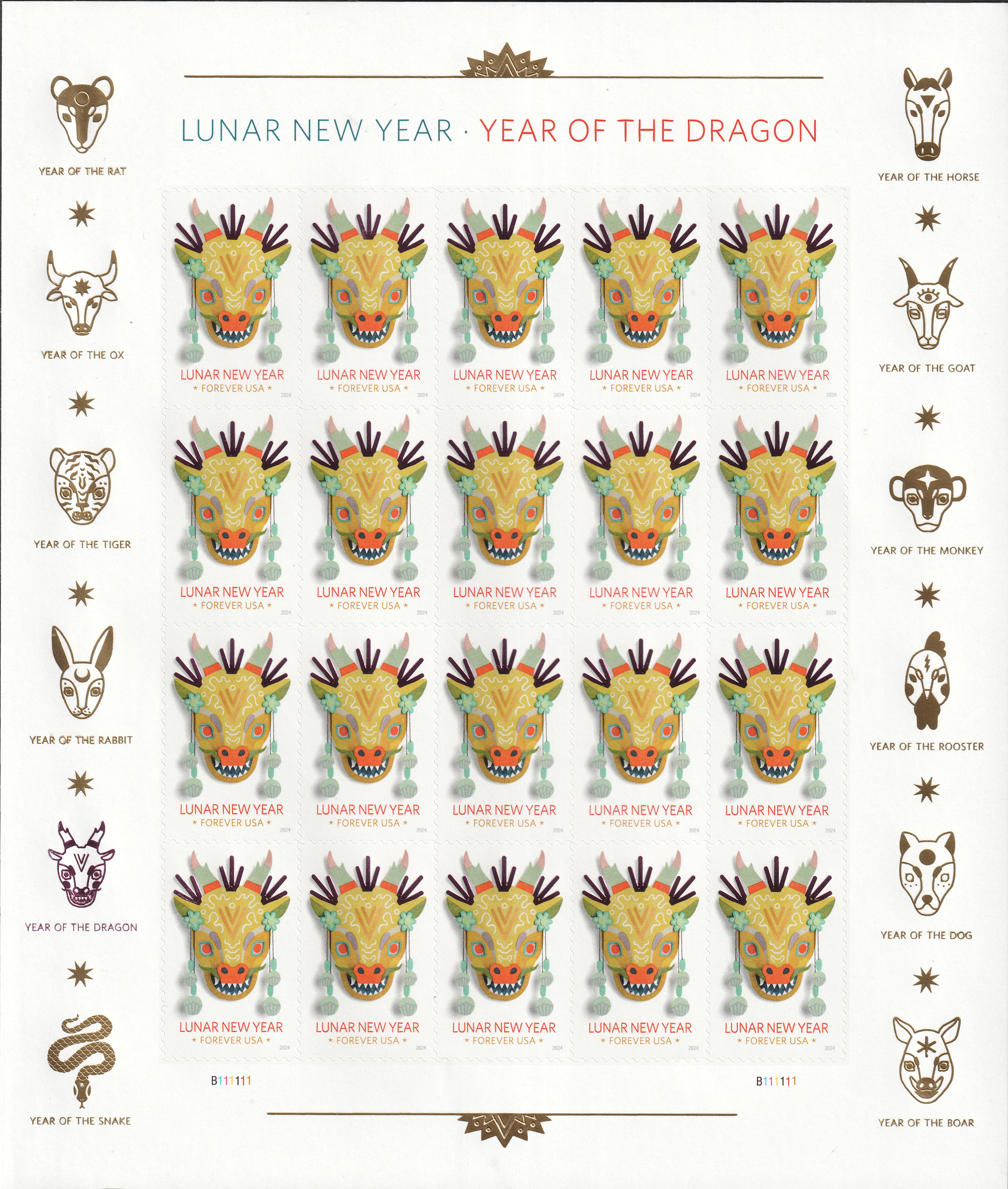 | Issue: | Lunar New Year: Year of the Dragon Stamp Announcement 24-02: Lunar New Year: Year of the Dragon Stamp Postal Bulletin: 22639 — 2023 December 14 |