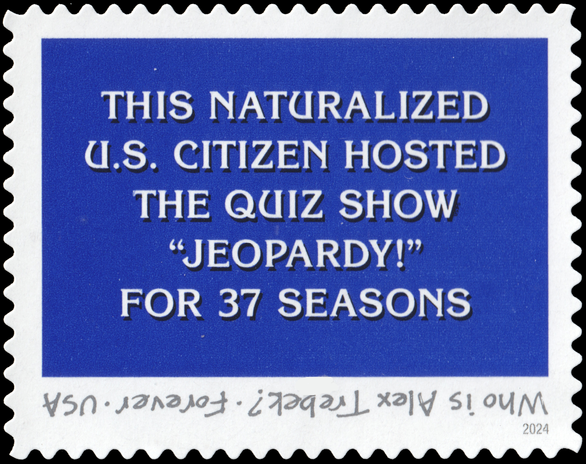 | — Back: | © 2024 Jeopardy Productions, Inc. All rights reserved • © 2024 USPS • USPS Logo • Two barcodes (485300) • Plate position diagram (6) • Promotional text |