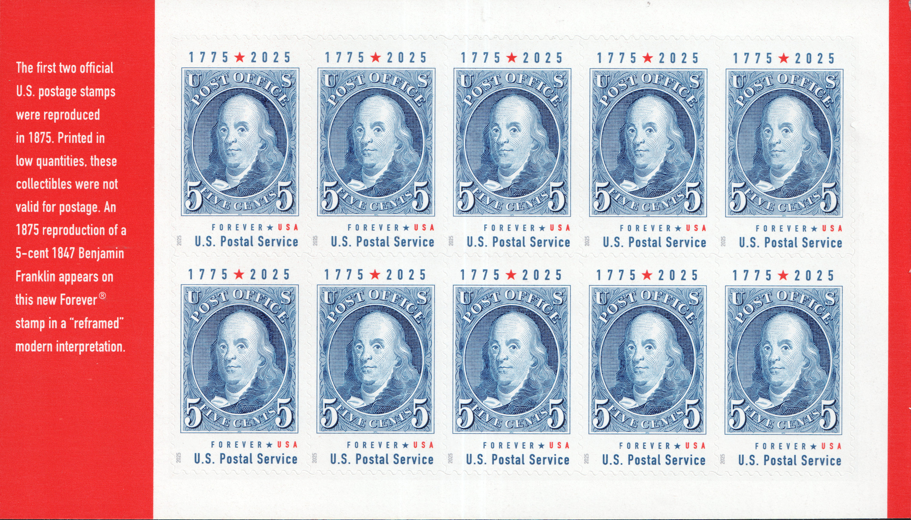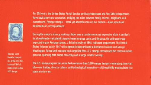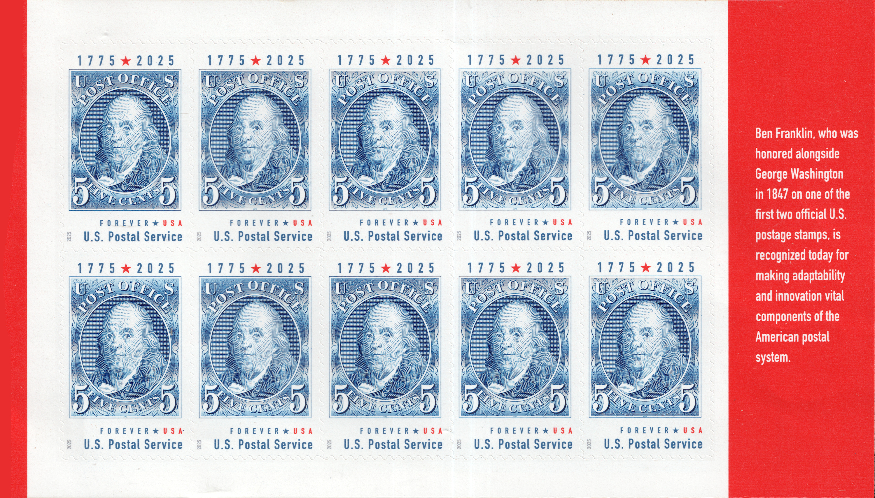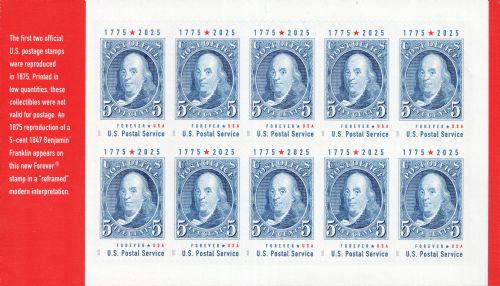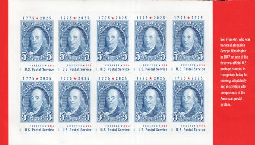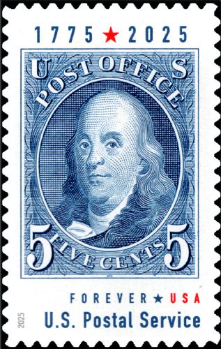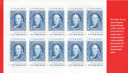 | Issue: | Benjamin Franklin Stamp Announcement 25-24: Putting a Stamp on the American Experience Prestige Booklet Postal Bulletin 22679 — 2025 June 26 |
